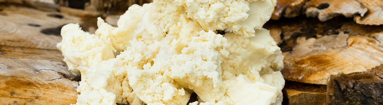 アフリカ・ガーナから直輸入している未精製シアバター(シア脂)。自然のままの成分とシアナッツの香りをお届けするため、化学的な精製をせずに仕上げています。全身にお使いいただける自然のめぐみたっぷりの、高保湿バターです。