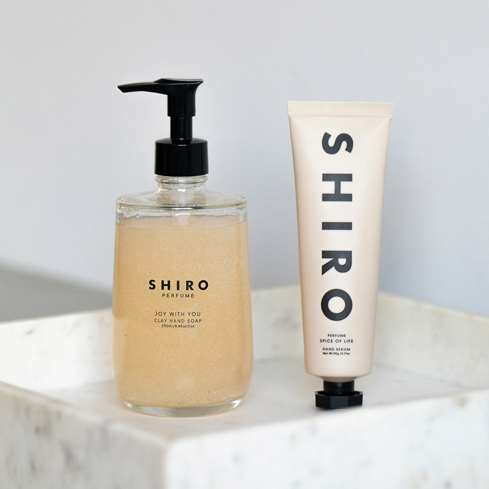SHIRO PERFUME オードパルファンとハンド美容液のキット。お気に入りの香りをシェアしたり、イメージに合わせて香りを選んだり。母の日の特別な贈り物として人気の組み合わせです。