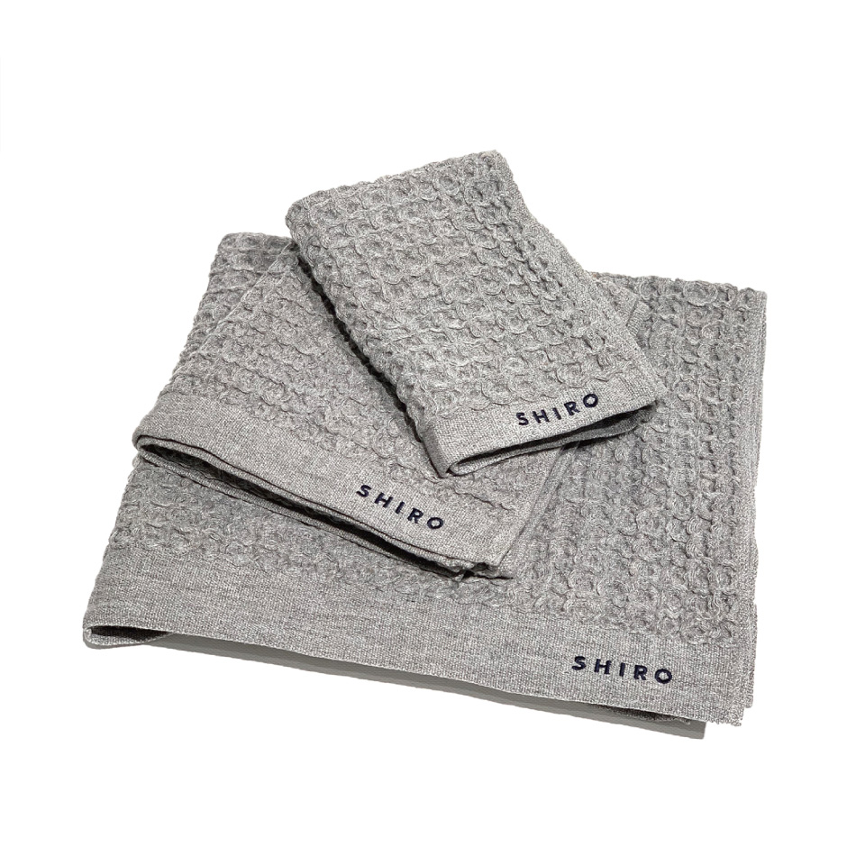 ベルギーワッフルのようにふっくらと織り上げたブレラ。 格子状の凸凹によりリネンのようなさらっとした肌触りと柔らかさが特長です。 Sサイズは、バックに入れるハンカチや、ゲストが来たときのお手拭として。 Mサイズはフェイスタオルとして様々なシーンで。 Lサイズはバスタオルとして。 S:360×360mm M:360×850mm L:600×1100mm ベージュ ネイビー ■取扱店舗 SHIRO オンラインストア、砂川本店、表参道本店、札幌ステラプレイス店、丸ビル店