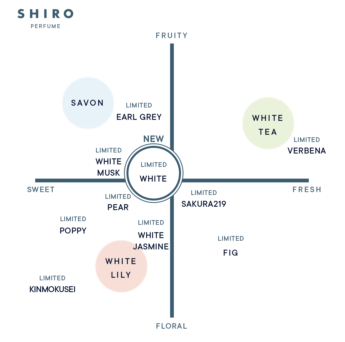 付ける人に合わせて馴染み、その人らしさを引き立たせる『ホワイト』の香りを、初夏の季節にお楽しみください。
