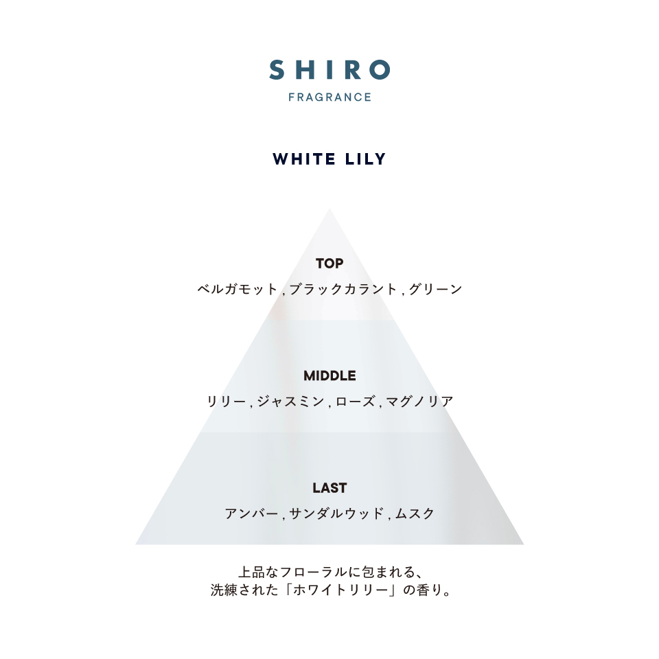 変更点として、ミドルノートのリリーを強め、マグノリアなどフローラルの香りを加えることで、全体的に丸みのある印象へと整えました。優しく包み込む自然な香りになっています。