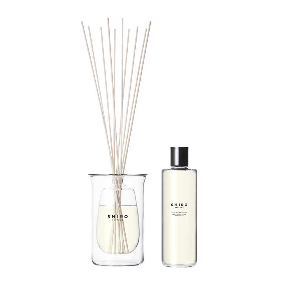 『パフュームディフューザーリキッド』(JOY WITH YOU、FAVOURITE DRESS) ガラス製の容器を採用したパフュームディフューザーの詰め替え用リキッド。 豊かな香りを空間に広げ、感性を刺激しながら、くつろぎの時間を演出します。 1本で約5カ月間、フレッシュな香りをお楽しみいただけます。