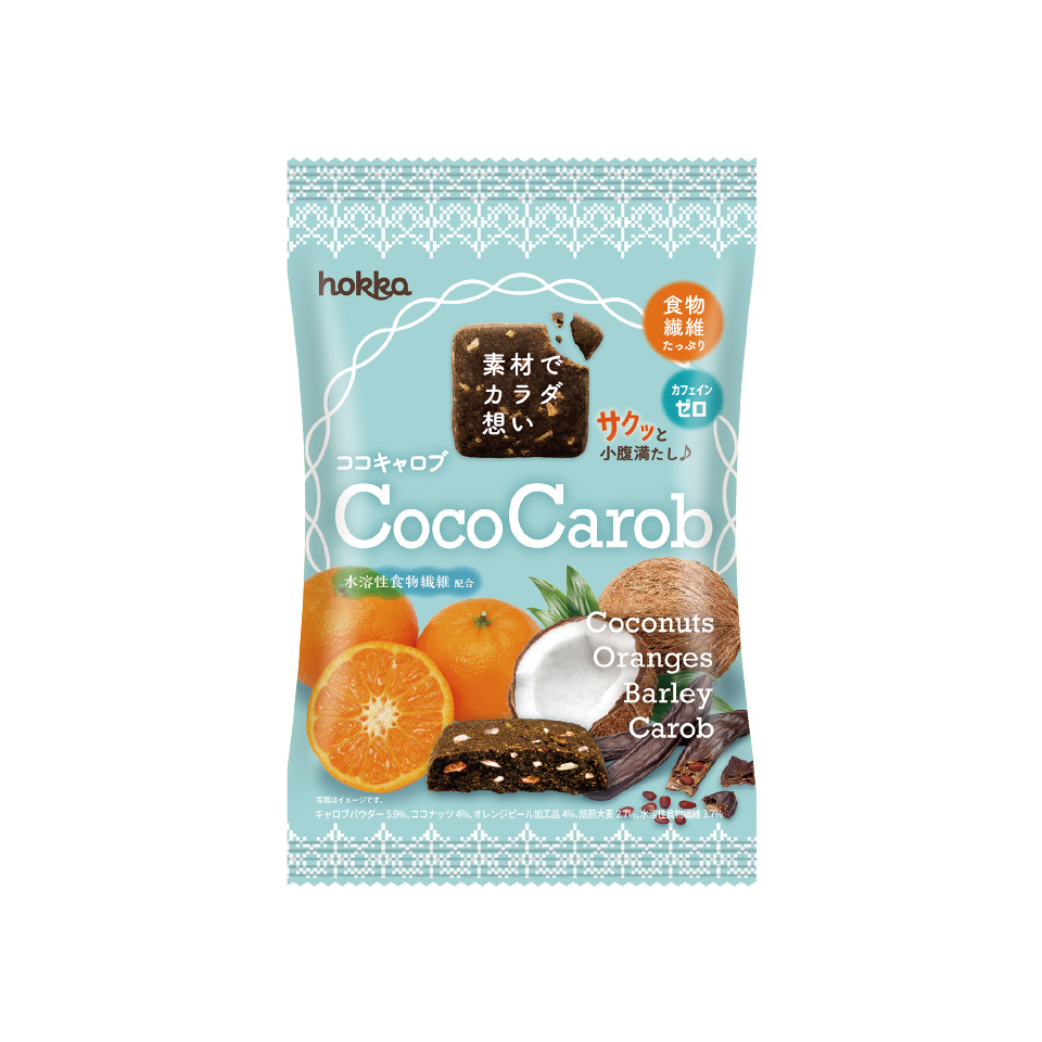 「健康は気になるけど、甘いものは食べたい」といった女性の声に応え、カラダに良い素材をたくさん使用した美味しい焼き菓子のシリーズ"素材でカラダ想い"。 コク深い味わいのキャロブを使用した生地に、ココナッツ、焙煎大麦、爽やかな味わいのオレンジピールをアクセントに混ぜ込んだ、サクっとした食感が特長です。