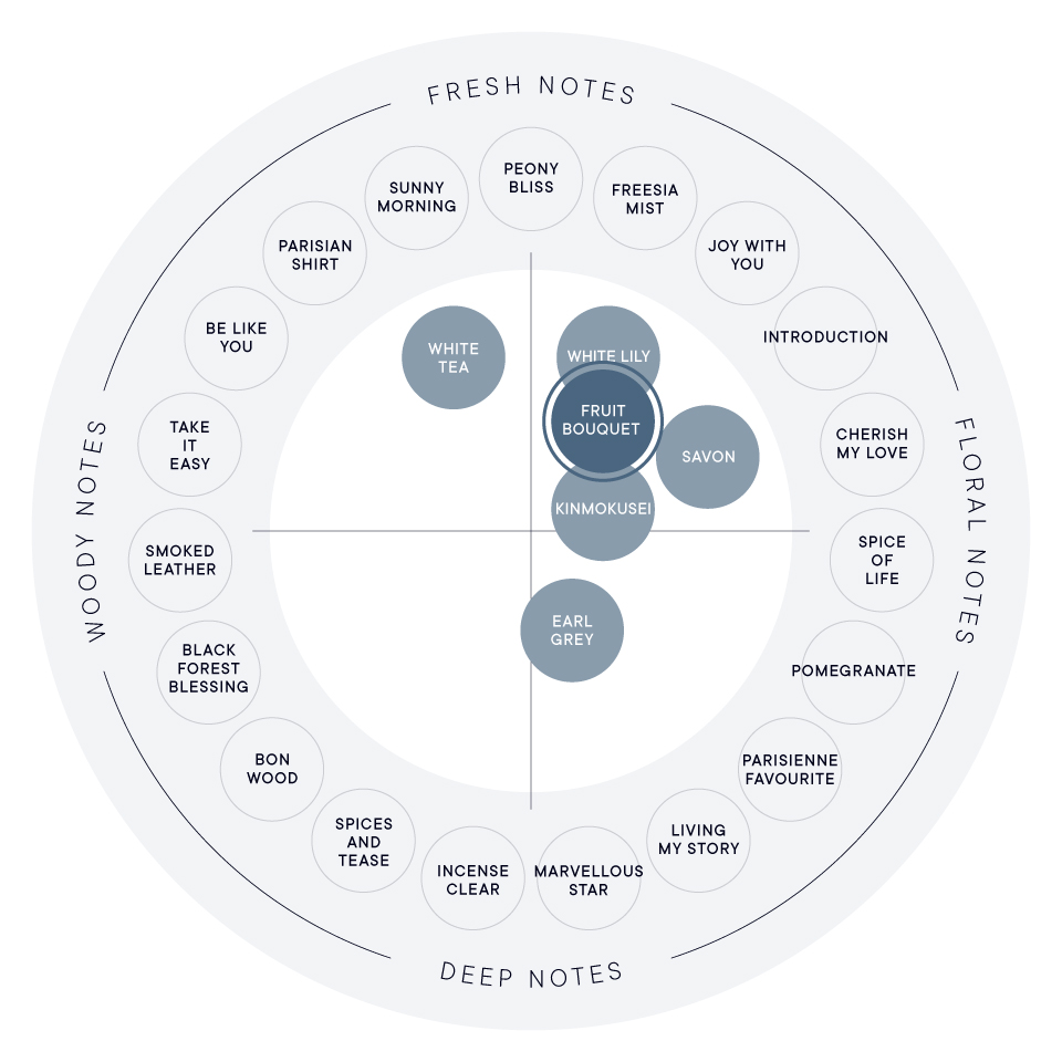 北海道・空知で出会ったさまざまなフルーツからインスパイアされた香り「フルーツブーケ」。 ハスカップやりんご、ぶどうを中心に、カシスやオレンジ、アプリコットなどのフルーツをたっぷり詰め込み、やわらかなフローラルでまとめました。フルーツの花束を抱えているようなしあわせな気分になれる香りを楽しみながら、トレンド感のあるスタイリングを叶えます。 オリーブオイル*1の配合により、乾燥しやすい髪を保湿し、まとまりのよい髪へ導きます。 濡れたようなツヤ感を出したり、毛先に束感を出すことで自然な動きをプラスして、その日の気分に合わせて自由にヘアセットを楽しめます。 ヘアセットで手に残ったバームは、そのまま手肌やひじなど、乾燥が気になる部分の保湿ケアに使うことができます。 <香りの持続時間>約2時間 *1 オリーブ果実油 / 保湿