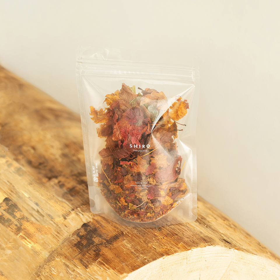 森で拾った落ち葉や木の実に、爽やかで深みあるホワイトティーの香りをまとわせました。