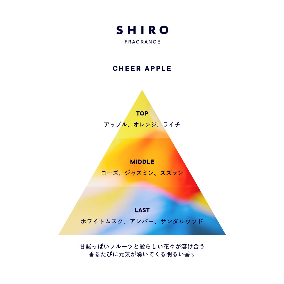 「チアアップル」は定番5種のフレグランスと比べると、最もバランスの取れたフルーティーフローラルの香り。