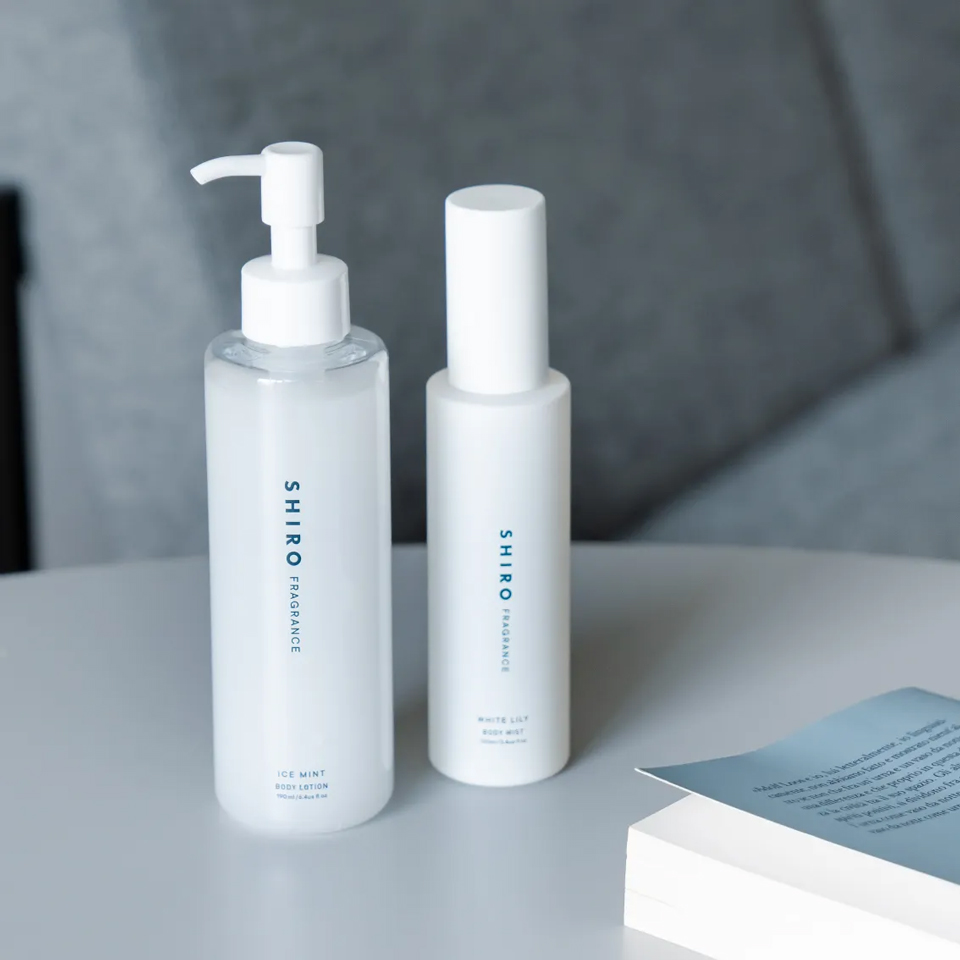 ひと塗りで強力な清涼感をもたらし、肌をしっとりと保湿する『アイスミント ボディローション』と、やさしい香りに癒やされながら肌の保湿ができる『ホワイトリリー ボディミスト』のキット。