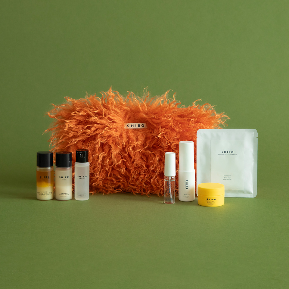 ビビッドなオレンジカラーが目を引くファーポーチに、乾燥が気になる冬の季節に寄り添うアイテムを詰め込んだセットは、ご自身用にはもちろん、ホリデーシーズンのギフトにもおすすめです。