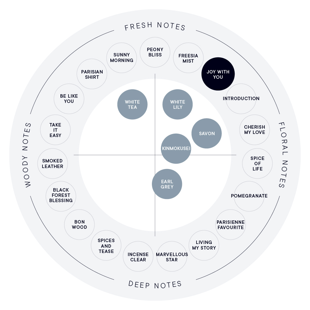 JOY WITH YOUは、喜びあふれる上品で可憐な花畑をイメージした香り。