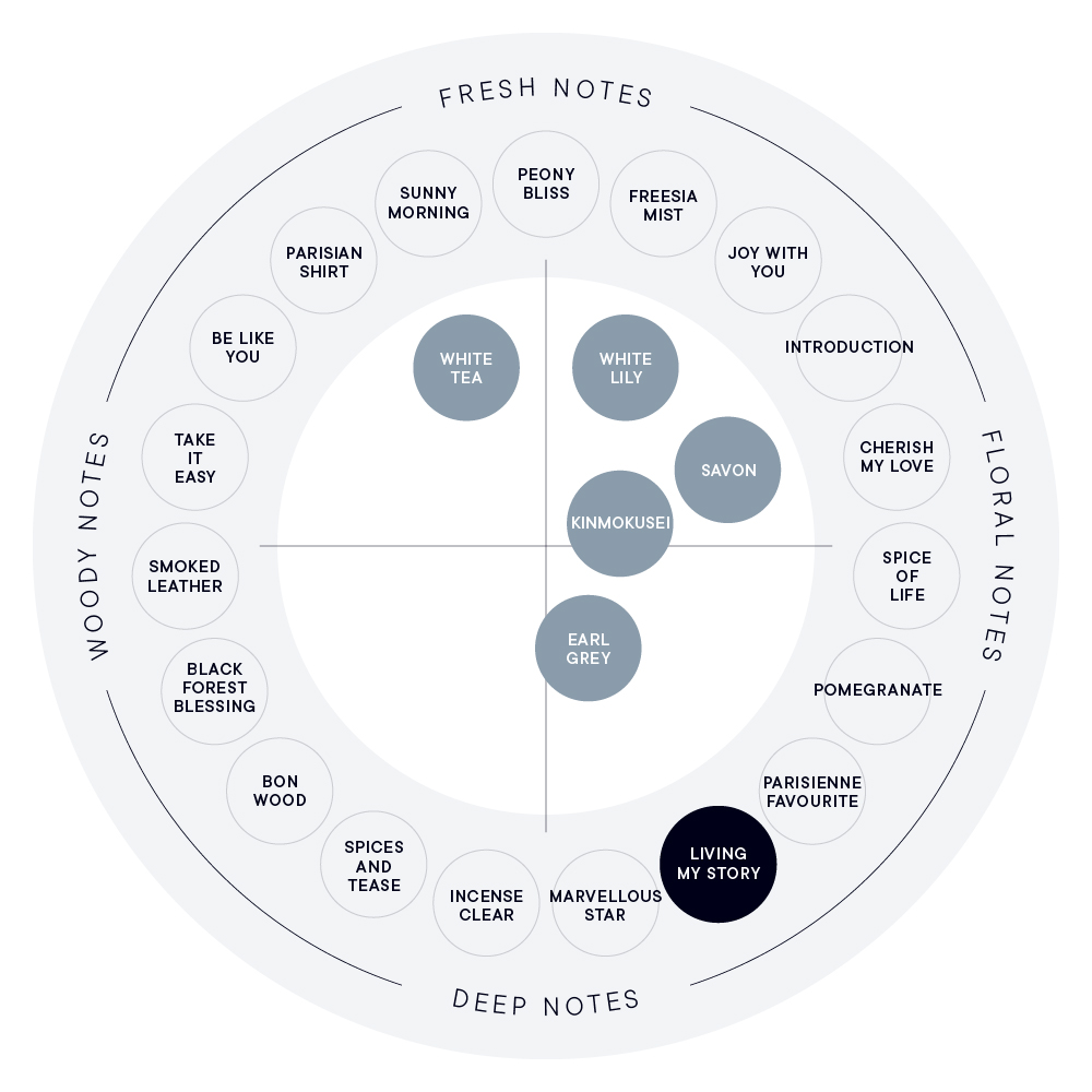 LIVING MY STORYは、エネルギッシュな情熱を表現した魅惑的なフローラルの香り。