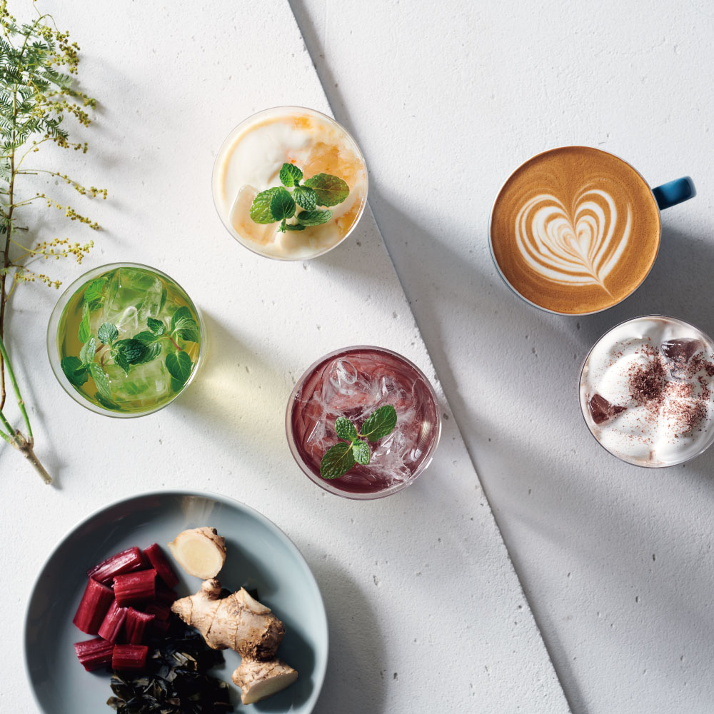 スキンケアやコスメにも使っている生姜やルバーブ、SHIRO LIFEで取り扱うドリンクをアレンジした、ここだけのメニューをご用意しました。